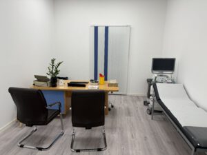 Die ärztlichen Gespräche und Untersuchungen finden in den 10 Sprechzimmern statt, wobei jedes zusätzliche Funktionen bedient: Pädiatrie, unterschiedliche Diagnostik und Funktionen wie Sono, Echo, Labor/Lunge und Herz.