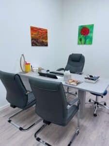 In den Räumen unserer Praxis wird Wohlfühlen großgeschrieben. Mit geschmackvoller Dekoration, Originalbilder örtlicher Künstler sowie Glasbildern der Natur und optimaler architektonischer Aufteilung der Behandlungsräume und der Aufenthaltsräume, können wir eine sehr angenehme und beruhigende Atmosphäre schaffen, in der der:m Ärzt:in das Heilen leichter gemacht wird.